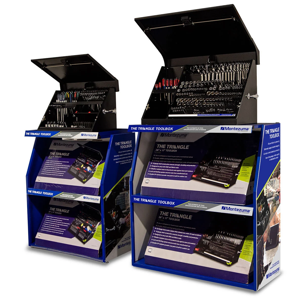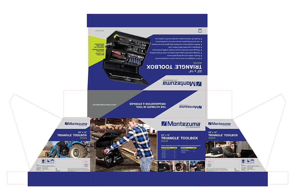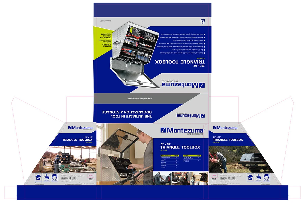 Packaging and POP design for a line of Montezuma triangle toolboxes. I redesigned the packaging and POP based on Montezuma's new logo and design.